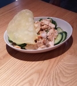 まずランチは片栗粉のホカッチャつきのハーブチキンサラダ。